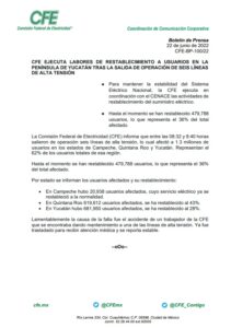 Por. Fernando Z. Dávila La mañana de este miércoles 22 de junio, diversas zonas de Quintana Roo, Yucatán y Campeche se vieron afectadas en el suministro de energía eléctrica, generando afectaciones a 1.3 millones de usuarios de esas entidades.