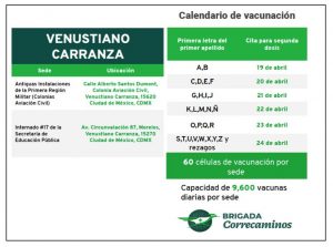 Segunda dosis de vacuna anticovid se aplicará en Coyoacán y V. Carranza