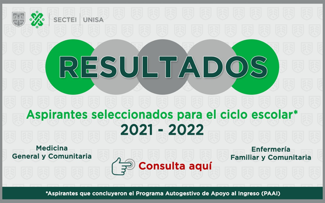 La Universidad de la Salud (UNISA) dio a conocer los resultados de su proceso de admisión a las licenciaturas de Medicina General y Comunitaria y Enfermería Familiar y Comunitaria con lo que podrán continuar el proceso de ingreso a la UNISA para el ciclo escolar 2021-2022.