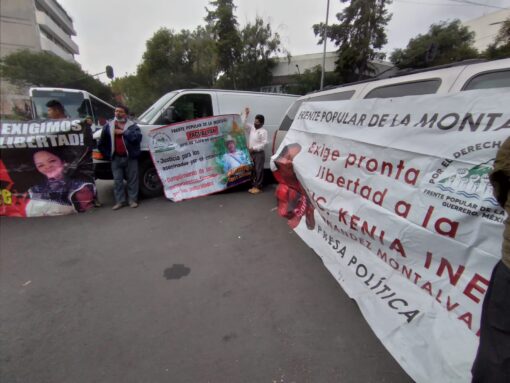 Mientras una comisión de ellos se reunía con autoridades federales, los integrantes del Frente Popular de la Montaña instalaron al exterior de la SEGOB mantas y camionetas, demandando la libertad de la activista Kenia Hernández Montalván.