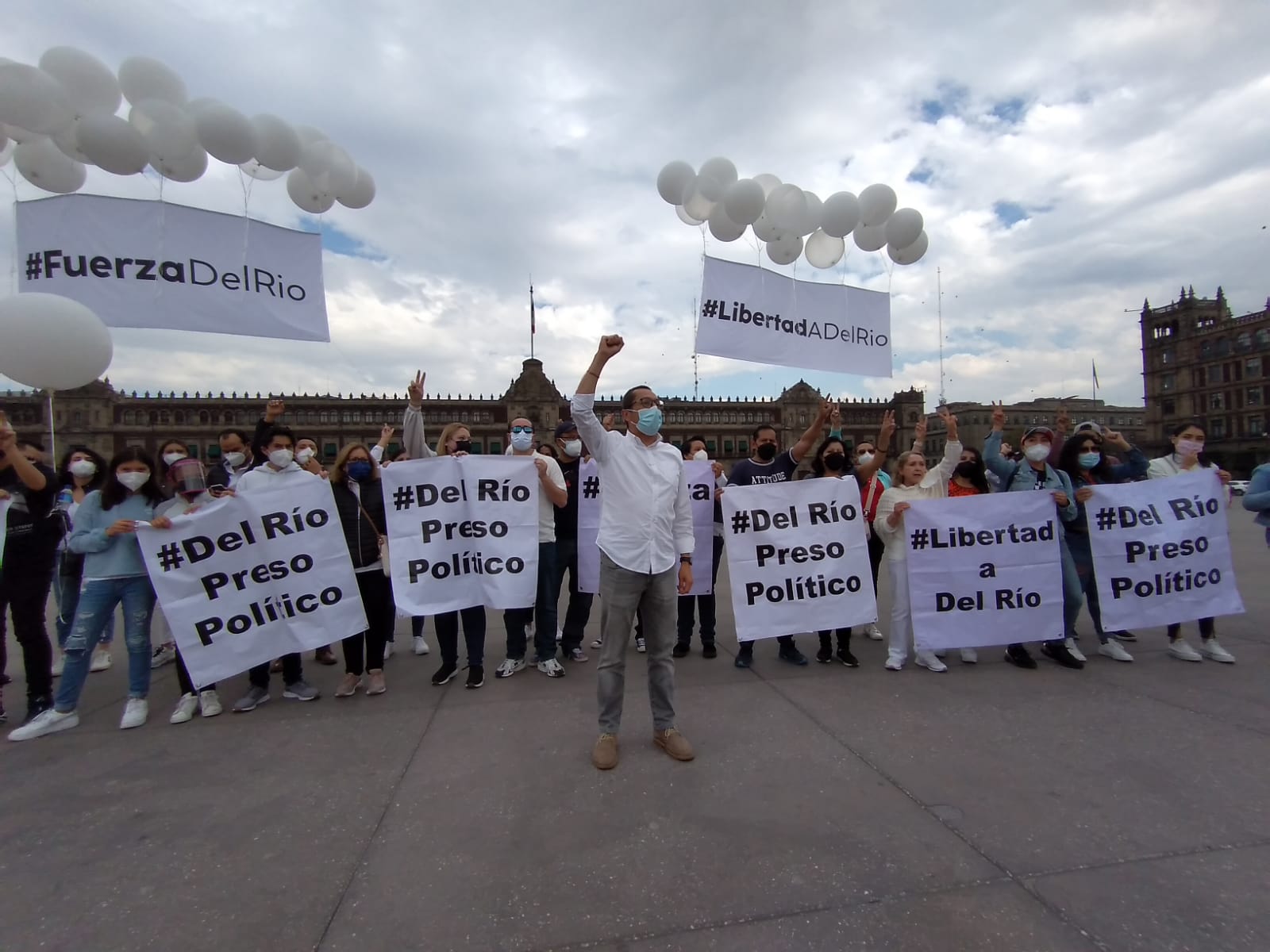 Familiares y amigos de José Manuel del Río Virgen, secretario técnico de la Junta de Coordinación Política del Senado, se manifestaron en el Zócalo de la Ciudad de México para exigir su inmediata liberación, toda vez que fue detenido por su presunta responsabilidad en el homicidio del candidato a la Alcaldía de Cazones, Veracruz, René Tovar.