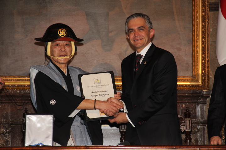 El Jefe de Gobierno del Distrito Federal, Miguel Ángel Mancera Espinosa, otorgó la Medalla y Pergamino que declaran Huésped Distinguido de la Ciudad de México al Sr. Hasekura Tsunetaka (descendiente de la decimotercera generación del Excelentísimo Samurai Hasekura Tsunenaga, quien hace 400 años hiciera la primera misión diplomática de Japón a México).Mancera Espinosa refrendó el interés de la capital mexicana por fortalecer los lazos de hermandad e intercambio con una nación japonesa destacada por sus tradiciones, cultura y la fuerza de su pueblo que ha sabido sobreponerse a muchas vicisitudes.