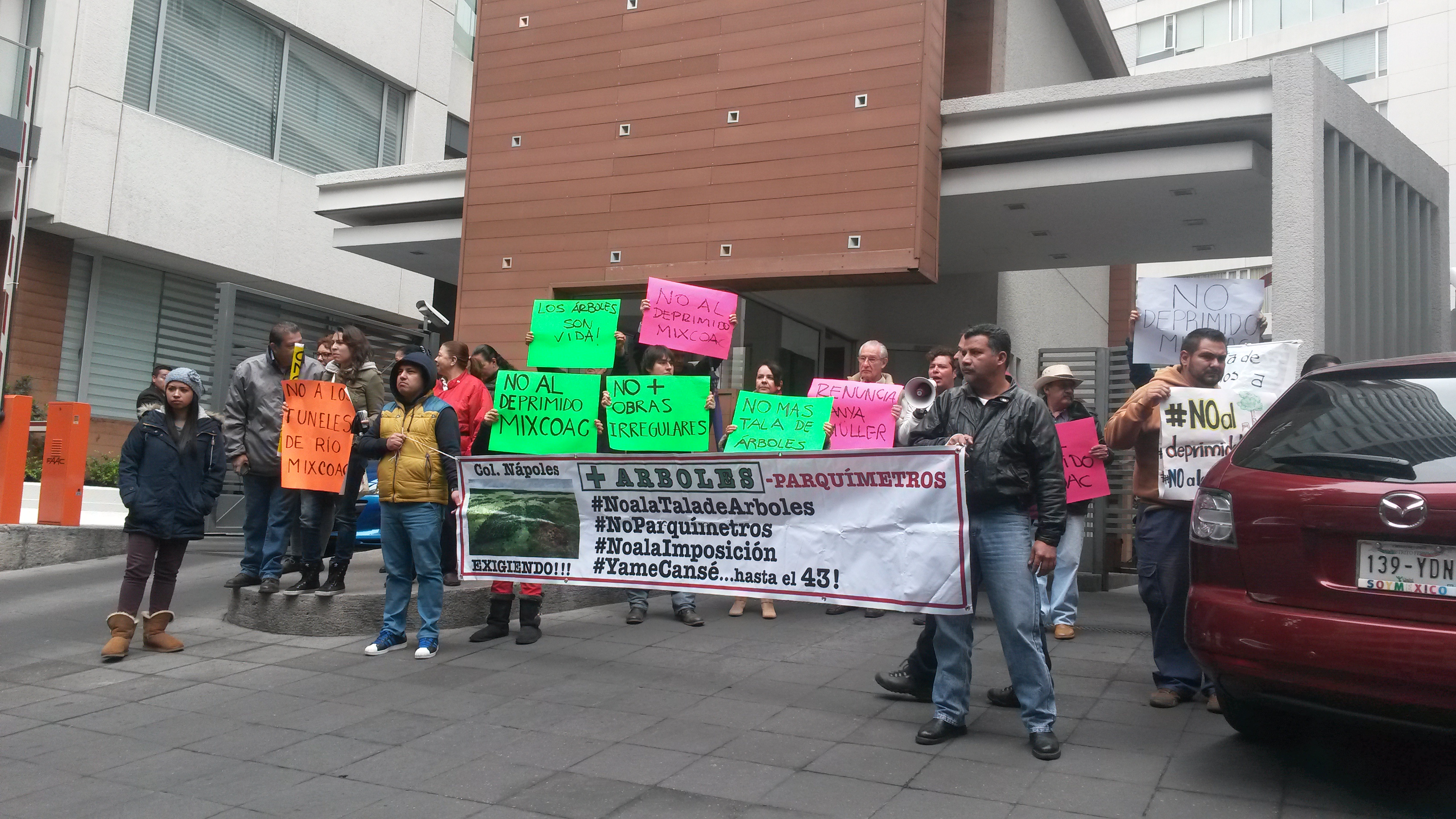 Vecinos de la delegación Benito Juárez que se oponen a la construcción del Desnivel Mixcoac–Insurgentes, se manifestaron al exterior del domicilio particular Jefe de Gobierno del Distrito Federal, Miguel Ángel Mancera, ubicado en la colonia Nápoles.