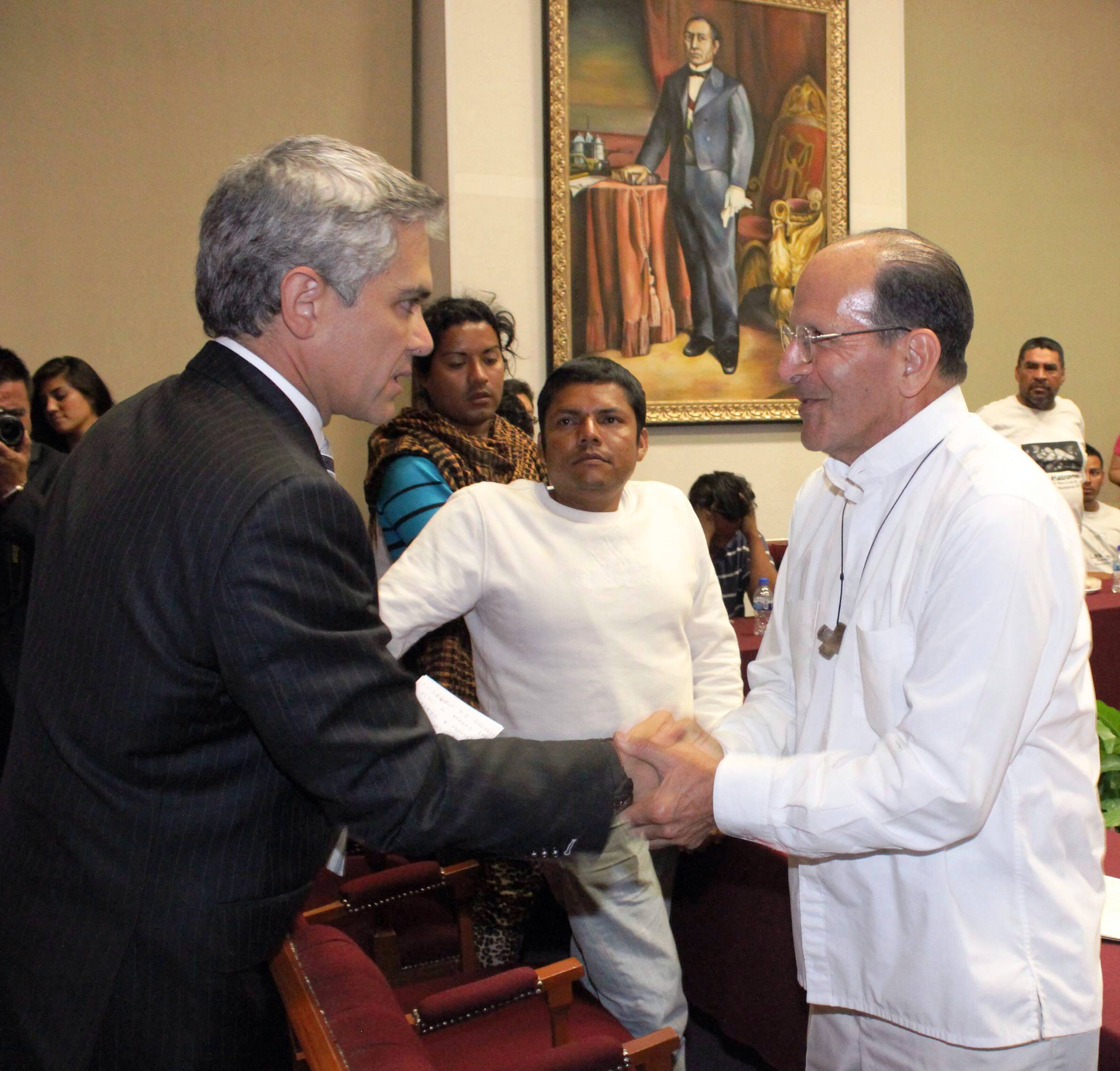El Jefe de Gobierno de la Ciudad de México, Miguel Ángel Mancera Espinosa, se reunió con un grupo de migrantes centroamericanos, encabezados por el padre Alejandro Solalinde.