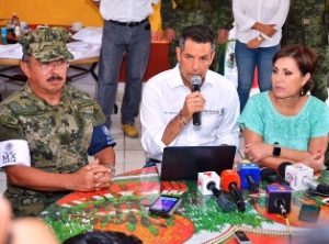 En tanto, el General de División Diplomado de Estado Mayor Alfonso Duarte Mújica, Comandante de la VIII Región Militar, precisó que personal de las fuerzas armadas continúan con la entrega de apoyos, víveres y cobertores a la población civil de las zonas con mayor afectación.