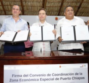 Tuxtla Gutiérrez, Chiapas.- Autoridades federales y el Gobierno de Chiapas, suscribieron ayer el Convenio de Colaboración para el desarrollo de la Zona Económica Especial de Puerto Chiapas.