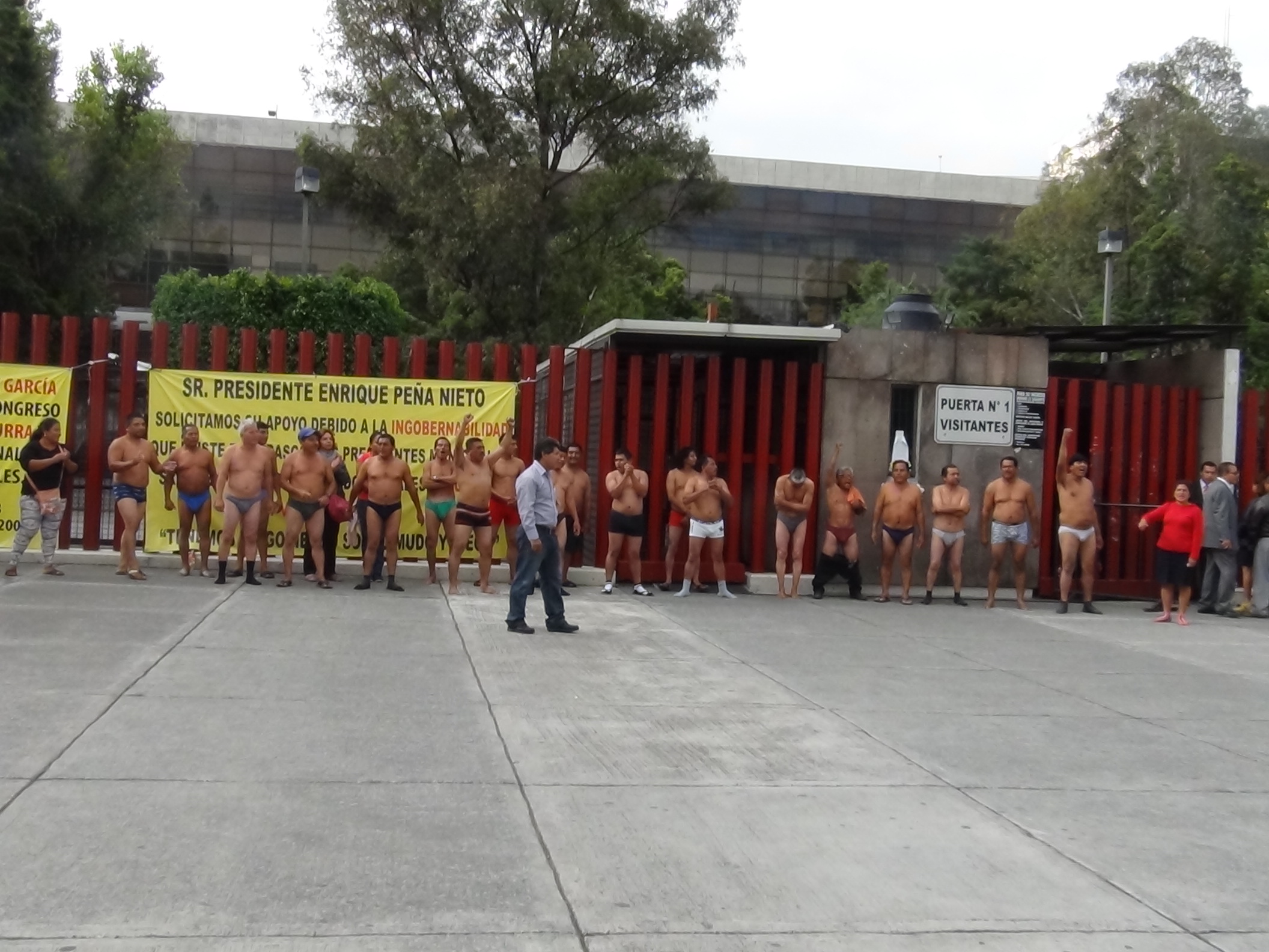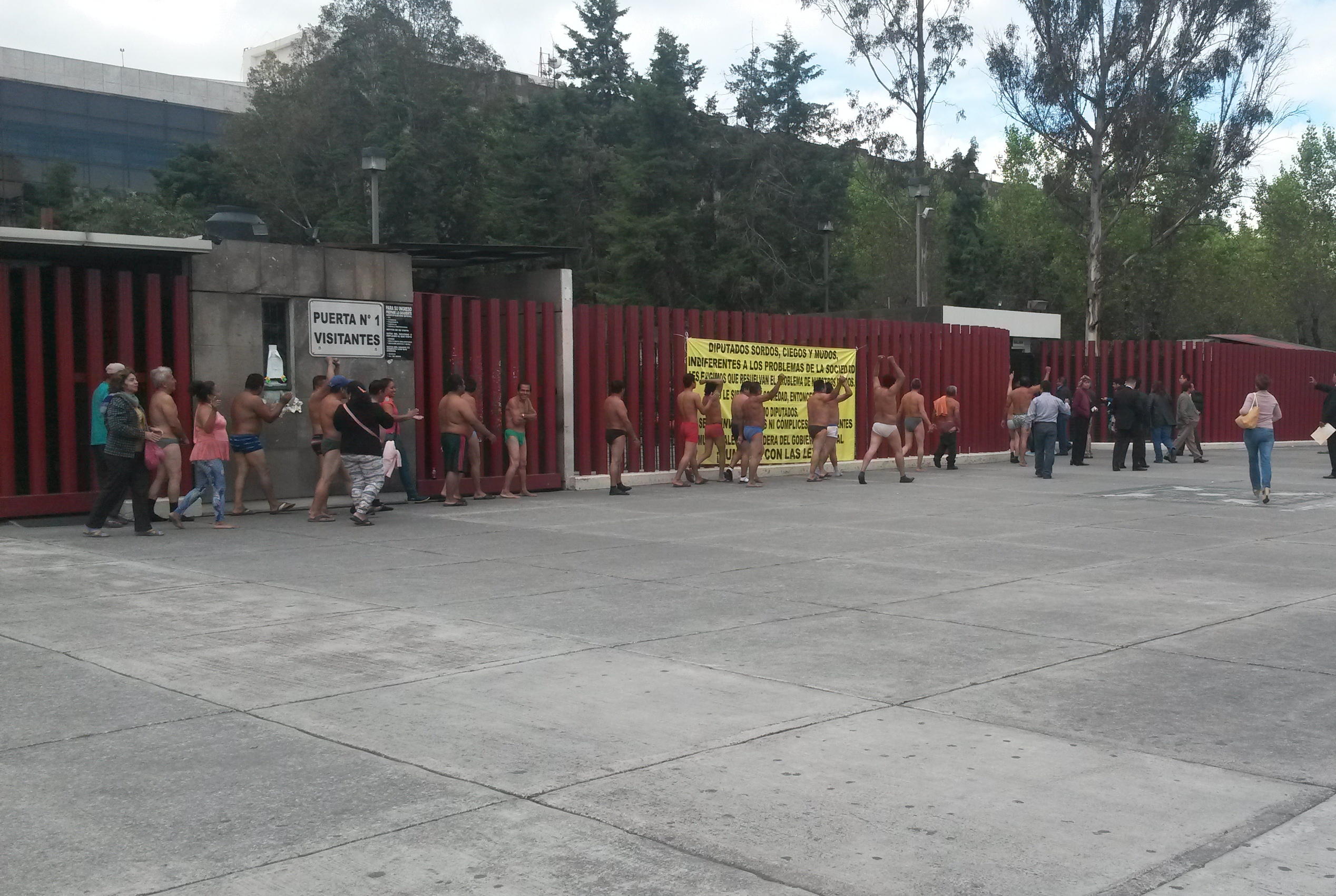 Ante la falta de respuesta de autoridades y legisladores federales, para garantizar que el Gobierno del Tabasco y Ayuntamientos cumplan con laudos federales, ex trabajadores del estado realizaron un “desnudo” como acto de protesta al exterior de la Cámara de Diputados.